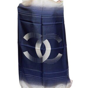 CHANEL BLUE SILK CC LOGO SHAWL