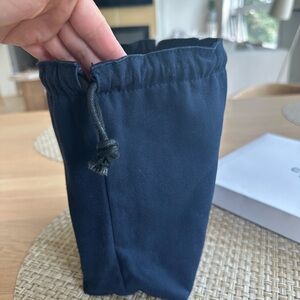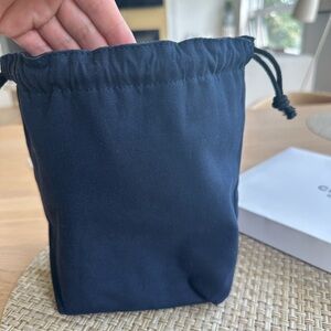 Sophisticated black and navy blue reversible drawstring cosmetic bag by CHANEL Beauté. Ideal for cosmetics or small essentials. Comes with original box.