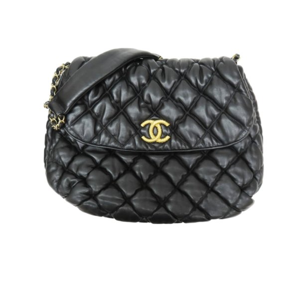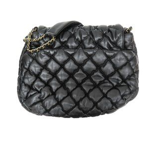 CHANEL Black Bubble Quilted Leather Flap Shoulder Handbag