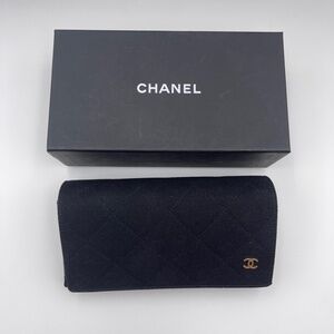 CHANEL Black Glasses Sunglasses Soft Case and box Quilted Fabric Gold CC Logo
