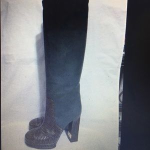 Authentic! Beautiful suede Chanel boots. Worn only a few times. Definitely an attention getter! Normally wear an 8 and had to go up to 8 1/2. Have original box.