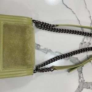 CHANEL Boy Small Light Green Lambskin Rabbit Fur