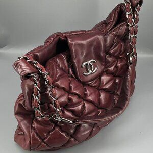 CHANEL Burgundy Lambskin Quilted /Bubble Shoulder Bag