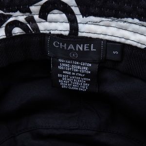 The hat is crafted of 100% cotton with camellia flowers and Chanel CC logos.