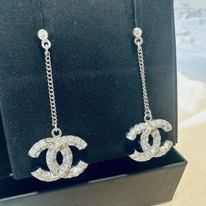 Model: CC Baguette Drop Earrings Metal with Crystals