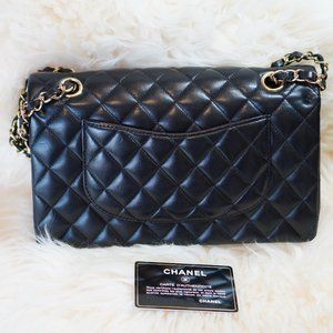 Super excellent condition Chanel Classic Handbag in black and gold hardware. Medium size. Only use 1 time.