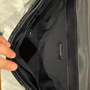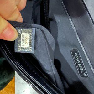 CHANEL - Navy Blue Patent Leather Large Boy Rever