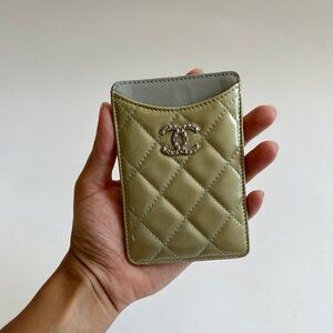 CHANEL PATENT LEATHER QUILTED CC INTERLOCKING LOGO CARD HOLDER