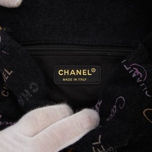 Chanel Printed Logo Black Denim Small Graffiti Flap Bag (2021)