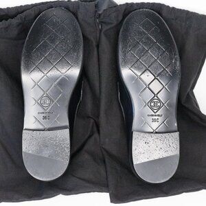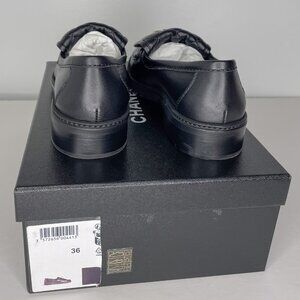 Authentic "Moccasin" a highly sought after style and "C" width purchased directly from Chanel. Includes dust bags, ribbon, camellia, and blemished box with no label. Size on people in pictures may not be the same size as this listing. Color in pictures may appear different in real life. Shipped in repurposed packaging. May wrinkle in transit. Item condition and packaging process recorded. Fit may vary.