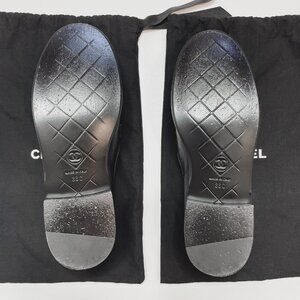 Authentic "Moccasin" a highly sought after style and "C" width purchased directly from Chanel. Includes dust bags, ribbon, camellia, and damaged box with no label. Size on people in pictures may not be the same size as this listing. Color in pictures may appear different in real life. Shipped in repurposed packaging. May wrinkle in transit. Item condition and packaging process recorded. Fit may vary.
