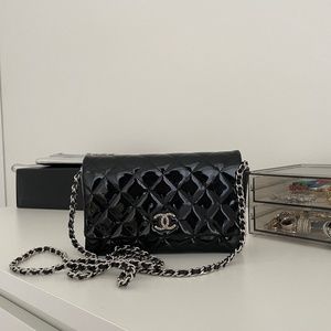 CHANEL Rare Piece - Black Patent WOC Wallet on Chain Silver Hardware, 2009-2010