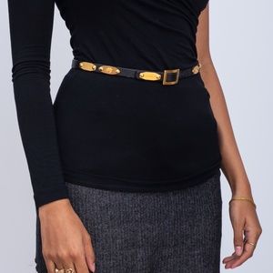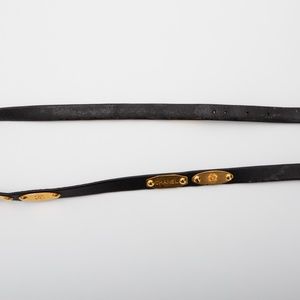This belt is from the 1995-1996 collection.The belt features leather construction, gold tone hardware, buckle closure and Chanel embellishments.