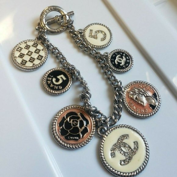 CHANEL ~ Vintage 90's Coco Chanel #5 CC Logo Rhinestone Charm Bracelet