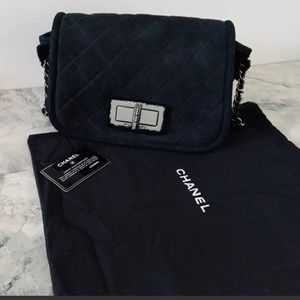 Beautiful authentic CHANEL black shearling and suede Mademoiselle Flap Bag, in like new condition.