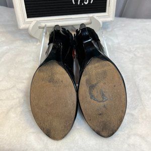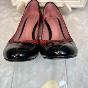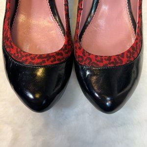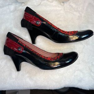 CHANII B Black Leather w Red Leopard Ruffle & Trim w Red Trim on Heels-38