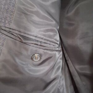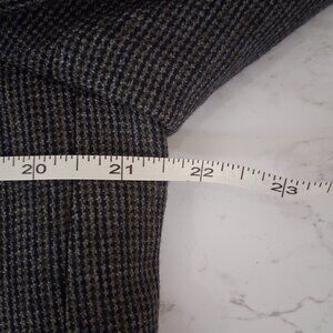 Chaps houndstooth tweed blazer, originally made for men but can also be worn by women. Navy blue and grey weave, 100% wool.