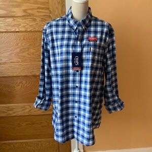 CHAPS Blue Plaid Flannel Button Down Shirt Size XL