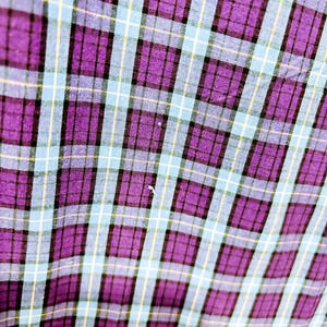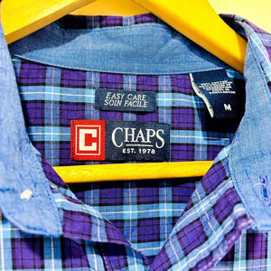 Classic and casual, this Chaps plaid shirt blends deep blue and purple tones in a soft cotton weave. Designed with a button-down collar and chest pocket for timeless appeal. Two tiny snags noted (see photo) but overall great shape for everyday wear.
