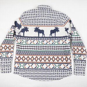 Nice quality thick 100% cotton shirt. Off white with southwestern colours and patterns and Moose motif. Great condition, no stains, no rips or holes, light wear, a few very faint fade lines on the arms. Tag size XL - see measurements in photos.