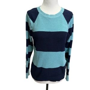 CHAPS Cotton Blue Striped Crew Neck Sweater Size S
