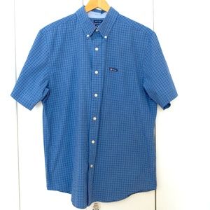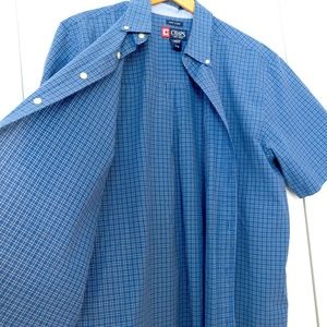 Bright blue short-sleeve buttoned-down shirt for men by CHAPS Est. 1978.