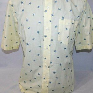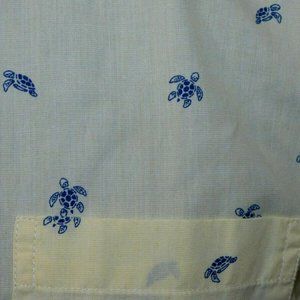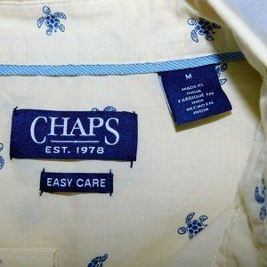 CHAPS Mens M Yellow Blue Sea Turtle Print Short Sleeve Button Front Shirt