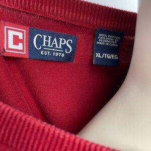 CHAPS Preppy Cropped Red Athleisure V-neck Sweater Pull sz S (mannequin)- XL