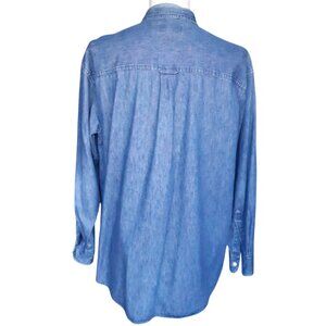 CHAP'S Ralph Lauren SZ M Faded Denim 100% Cotton Button Down Men's Shirt