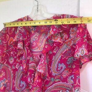 CHAPS Ralph Lauren Sheer Paisley Print Ruffle Flutter Sleeves Button Blouse 8