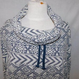 CHAPS womens 2XL White Navy Blue Aztec south west Cowl Neck Pullover Sweater