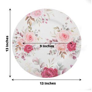 Turn any event table setup into something truly special. These serving plates are crafted from sturdy plastic and feature a beautiful rose flower design in a classic round shape. The vibrant colors and intricate details of the floral print make these charger plates perfect for vintage, garden, and spring-themed events. With these plates, you can add an extra touch of sophistication to your table décor and make your guests feel like royalty.