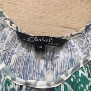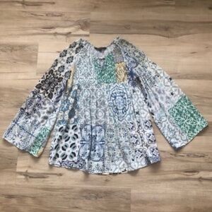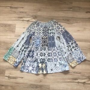 CHARLIE B Patchwork White and Blue Blouse