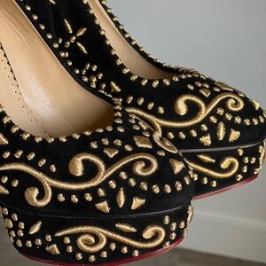 Inspired by the allure of old Hollywood glamour, Charlotte Olympia Dellal launched her London based label Charlotte Olympia in 2006. Synonymous with classic shapes and meticulous attention to detail, each shoe is hand crafted in Italy and finished with the brand's signature gold spider web on the sole.