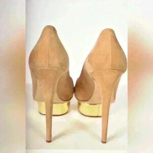 CHARLOTTE OLYMPIA Beige Gold Metallic Dolly High Heel Suede Pumps 38.5EU Italy