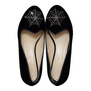 CHARLOTTE OLYMPIA Black Velvet Spider Web Flats (Size 37)