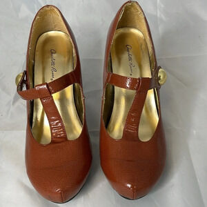 CHARLOTTE RUSSE Ashley Rusty Brown T-Strap Platform Pumps Shoes Heels Size 8