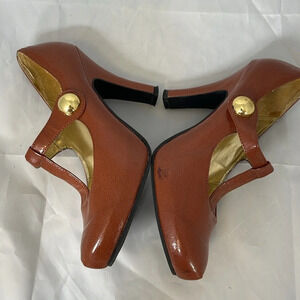 Women’s rusty orange brown Charlotte Russe “Ashley” T-Strap Platform Pumps / Shoes / Heels.