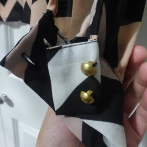 In good condition! Please note that there is some minor colour bleeding on one of the sleeves. See pics. It is not very noticeable. The sleeves have gold buttons at the cuff, multi-colour stripes. Very cute top for spring, summer, day out, brunch date, party or date night!