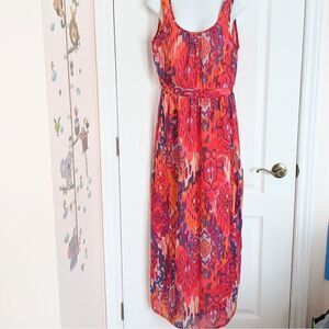 CHARMING CHARLIE maxi dress ikat multicolored watercolor pattern size M @i