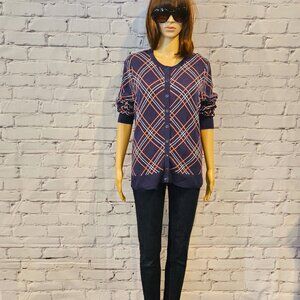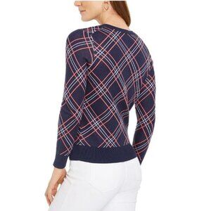 CHARTER CLUB, Navy blue/white/pink plaid cotton cardigan