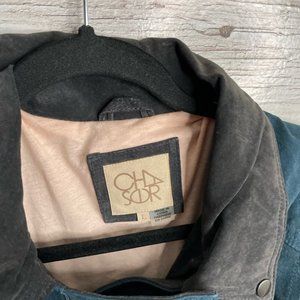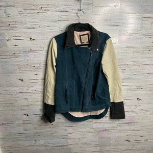 CHASER cream blue suede biker moto jacket size large