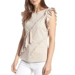 Asymmetrical ruffles turn this wardrobe must-have top into a look that's timeless and modern all at once.