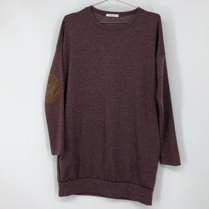 CHERISH Oversized, Tunic Pullover Sweater with Elbow Patches & Pockets S