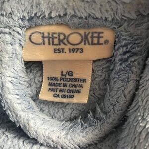 CHEROKEE Blue Long Sleeve Bath Robe L Pockets Waist Tie Belt Soft Cozy