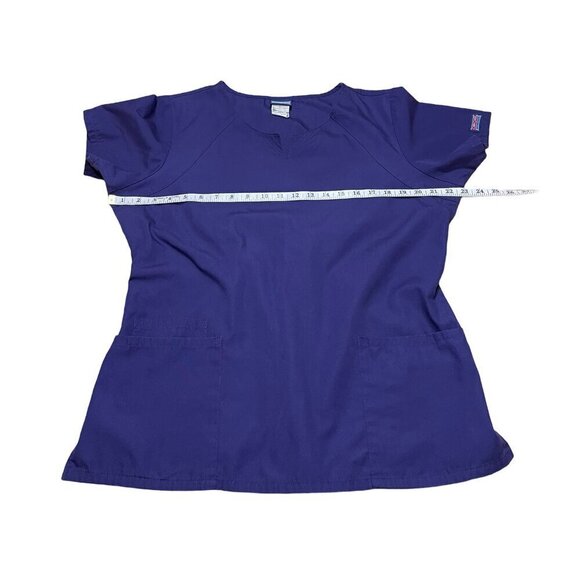 CHEROKEE Purple Scrubs Top V-Neck Pockets Gathered Back Short Sleeve Women's L
