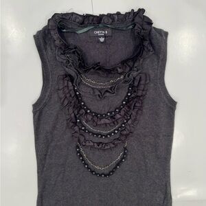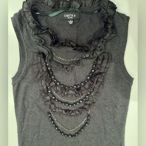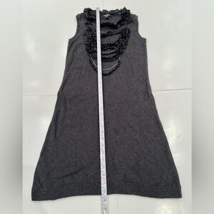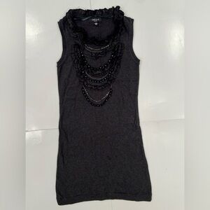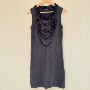 color is a charcoal gray detailed front with chains and Beads and Ruffles sweater dress
