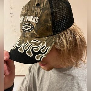 Genuine GM CHEVY TRUCKS Camo and Flames Trucker Hat.