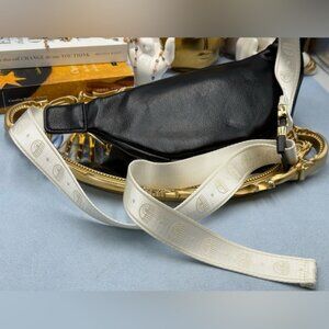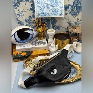 🆕 CHIARA FERRAGNI 🧿 NWOT Eye Star Patch Belt Bag, Black PU Leather White Strap