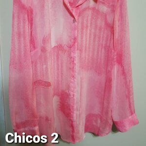 CHICO'S Blouse Pink Semi Sheer Tunic Feminine size 2 Top